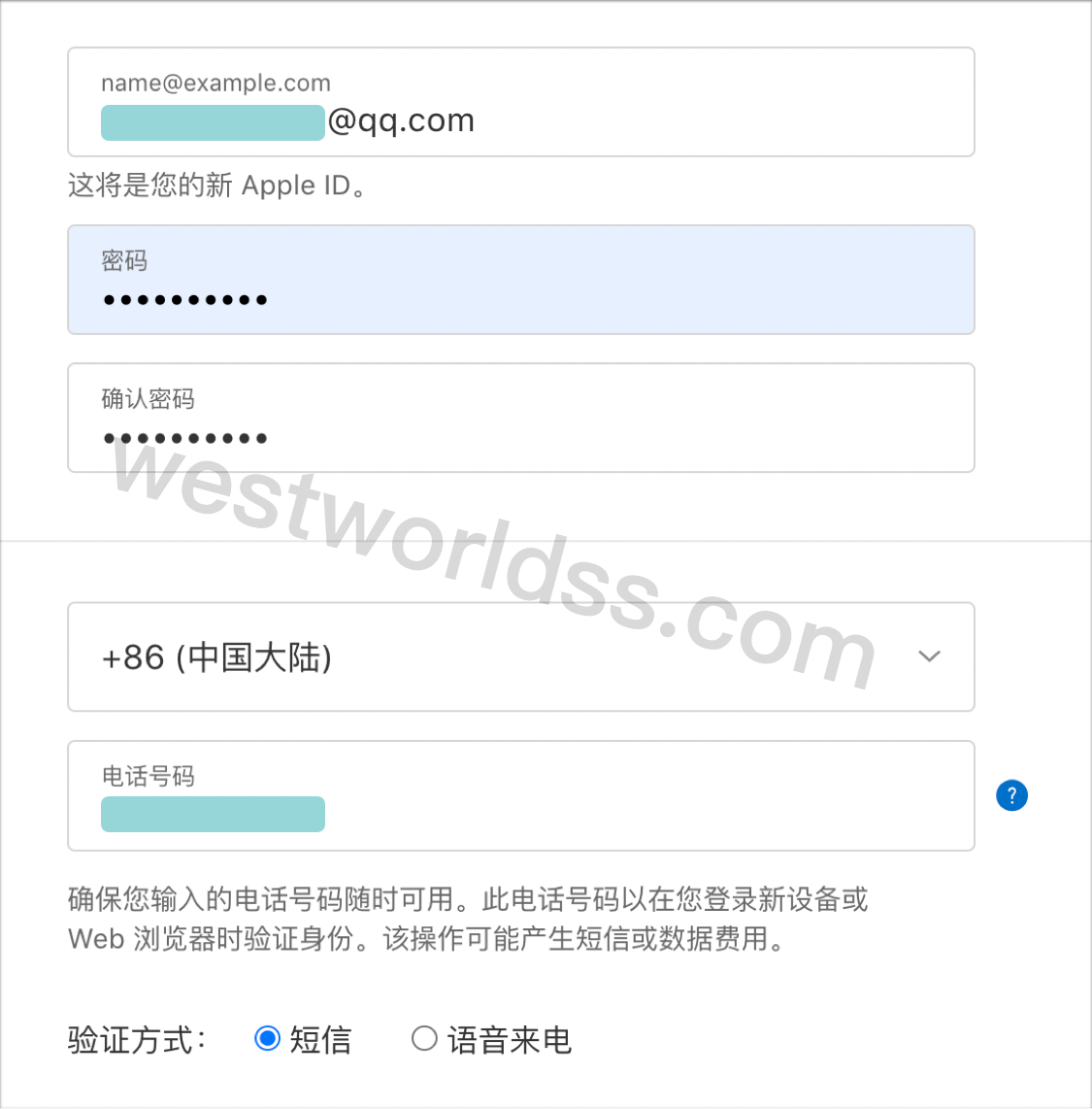 - 电话号码:输入您自己的手机号